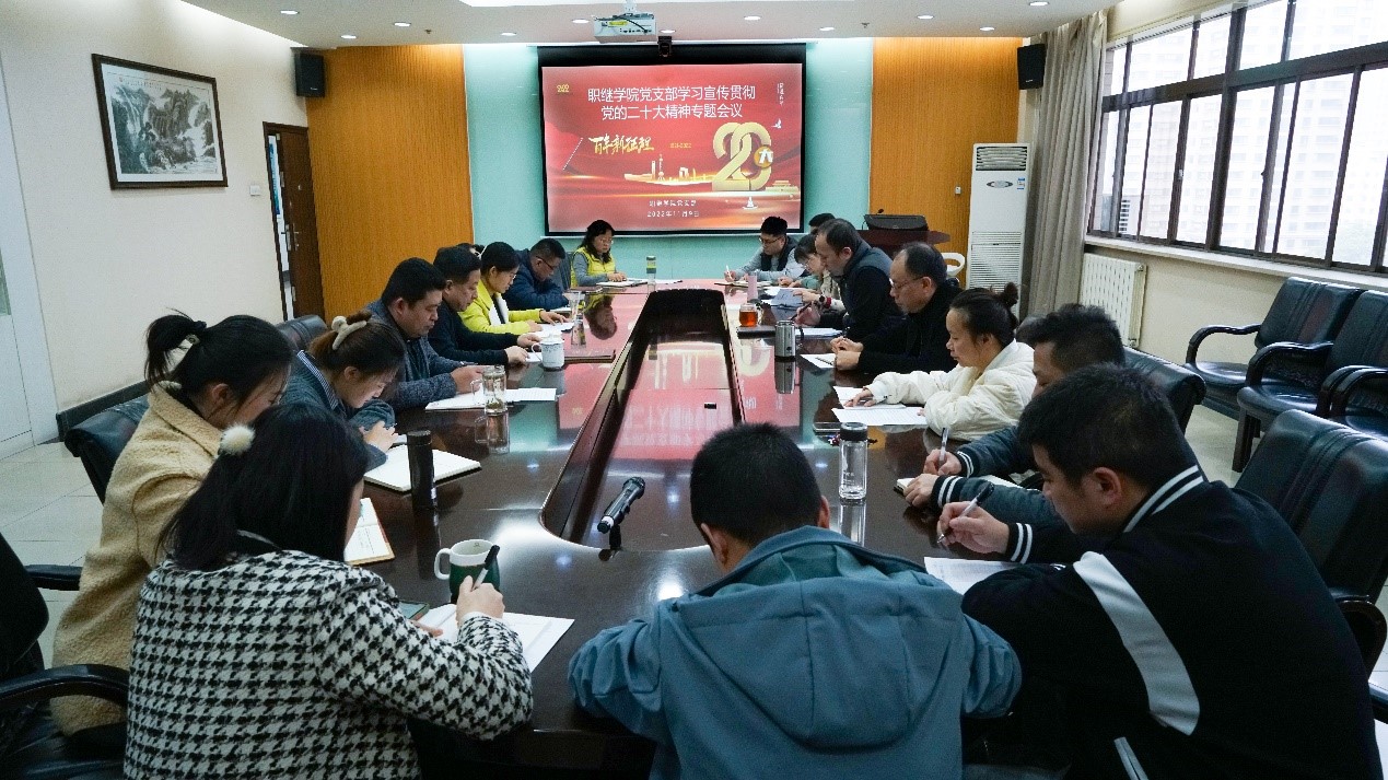 11月9日下午,公司党支部在公司会议室召开党的二十大精神专题学习会,会议由支部副书记刘斌主持,12名职工党员和7名入党积极分子参加了会议。会上,首先由4名党员同志分别领学了《习近平在中国共产党第二十次全国代表大会上的报告》、《中共中央举行新闻发布会解读党的二十大报告》、《弘扬伟大建党精神和延安精神 为实现党的二十大提出的目标任务而团结奋斗》。集中学习后,1名党员同志和1名入党积极分子依次分享了二十大精神学习心得体会,并表示要密切立足党和公司的教育事业,积极作为,撸起袖子加油干,以永不懈怠的精神状态和一往无前的奋斗姿态为公司继续教育事业贡献自己的一份力量。