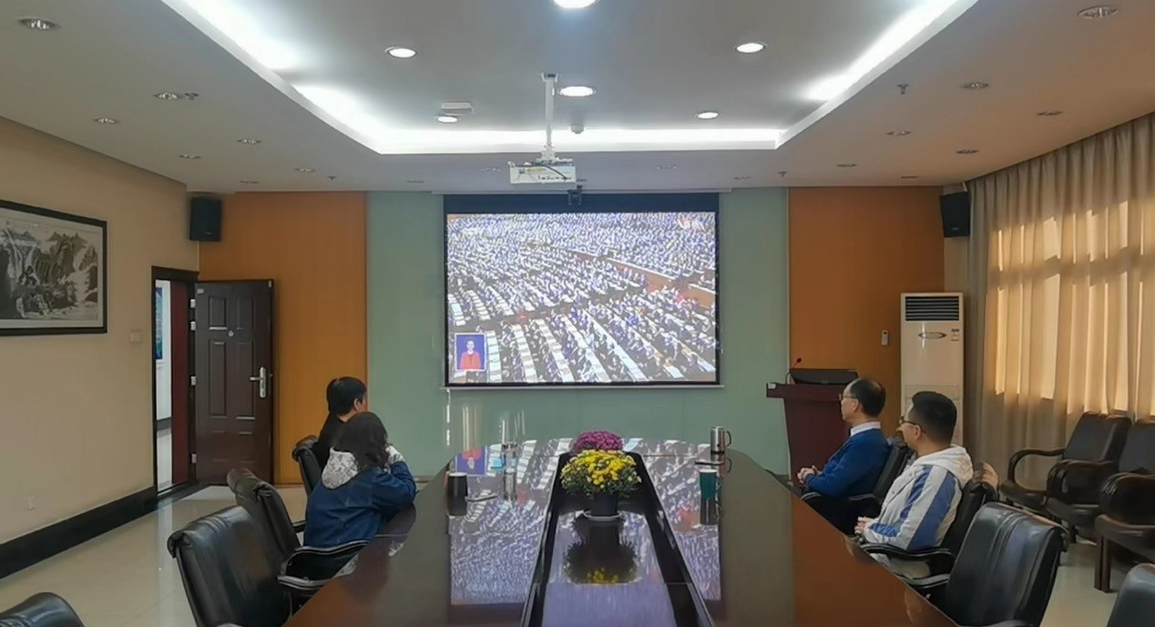 10月16日上午,根据疫情防控校园封闭管理要求,职继公司组织全体在校教职工在公司会议室集中收看,居家办公教职工自行通过电脑、手机、电视等方式收看收听党的二十大开幕会现场直播盛况,所有教职工认真聆听了习近平总书记代表十九届中央委员会向大会所作的报告。大家精神振奋,热情高涨,第一时间学习领会大会精神,提高自身的思想觉悟和党性修养。
