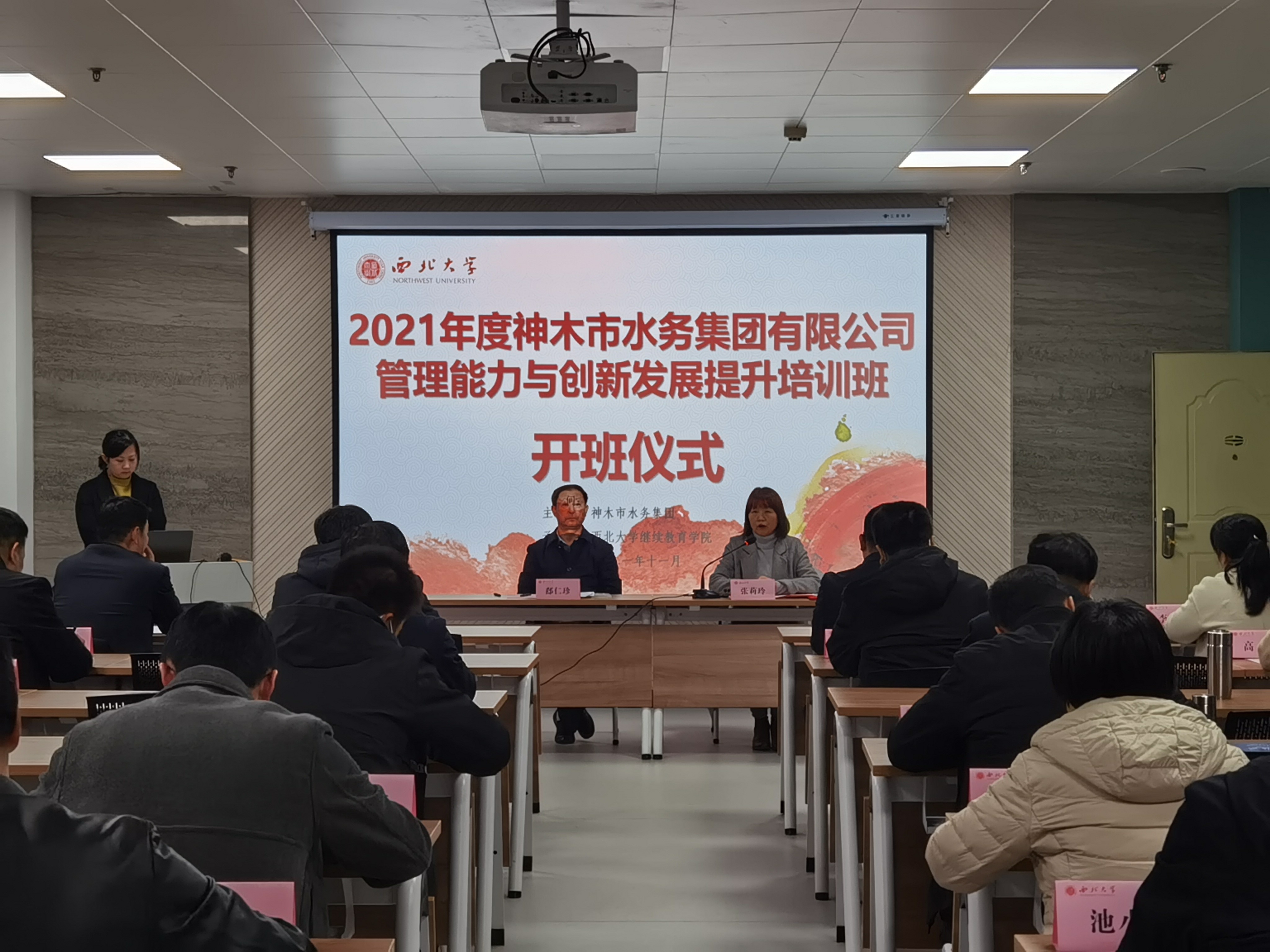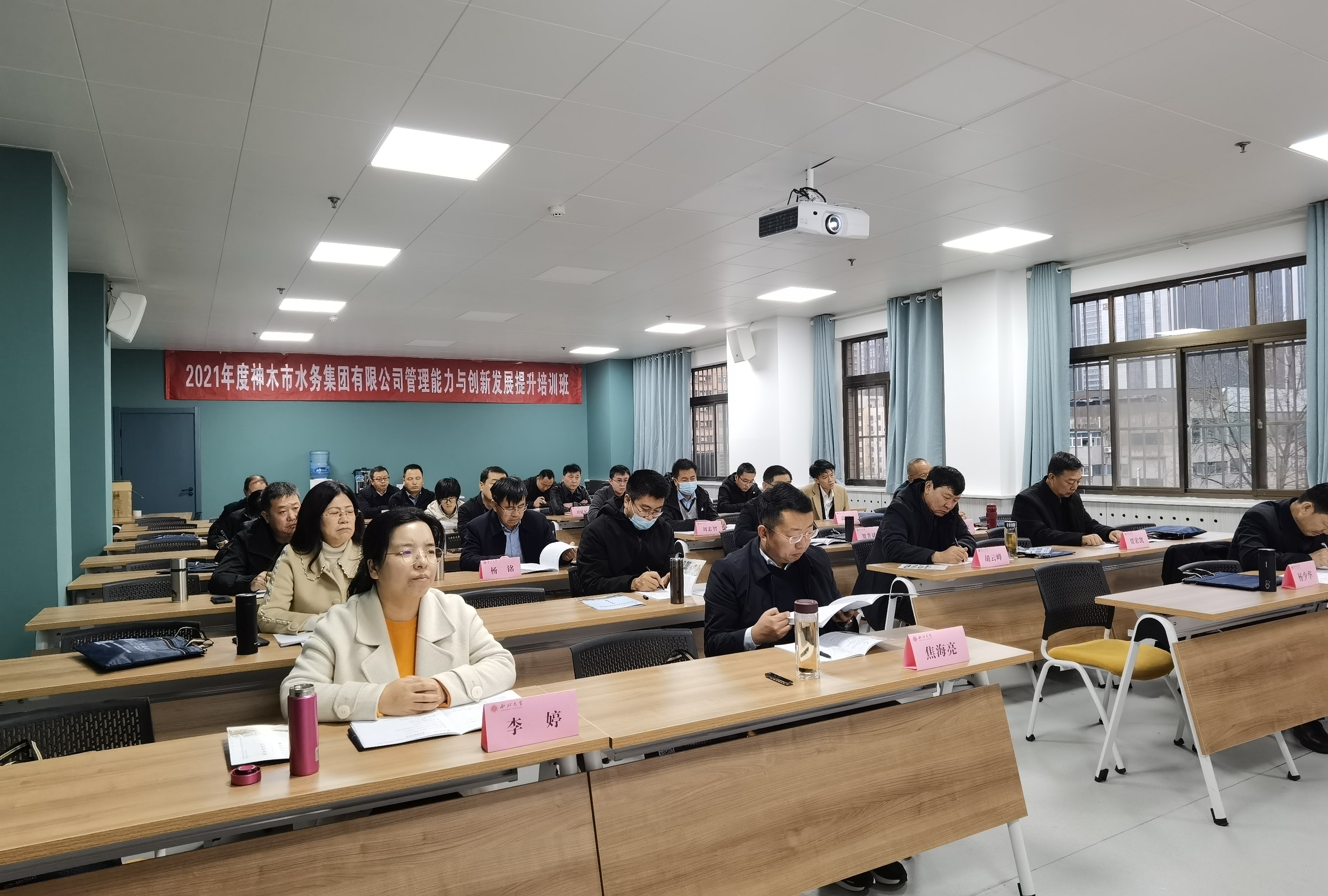 11月29日,2021年度神木市水务集团有限公司管理能力与创新发展提升培训班在z6mg人生就是博官网桃园校区成功举办。神木市水务集团有限公司总经理郄仁珍,z6mg人生就是博官网副经理张莉玲出席开班仪式,来自神木市水务集团有限公司及下属各公司领导干部20余名同志参加了此次培训。