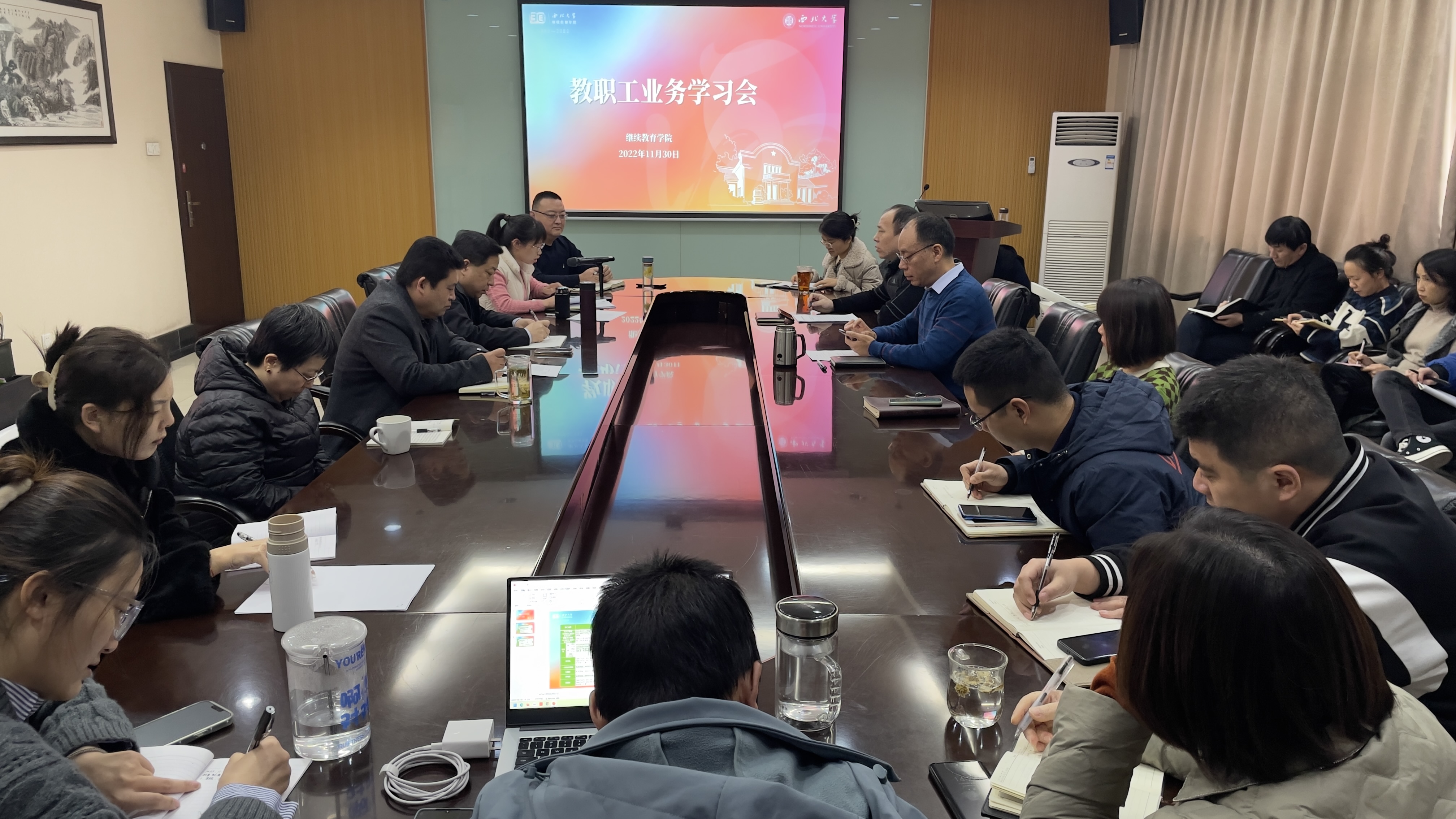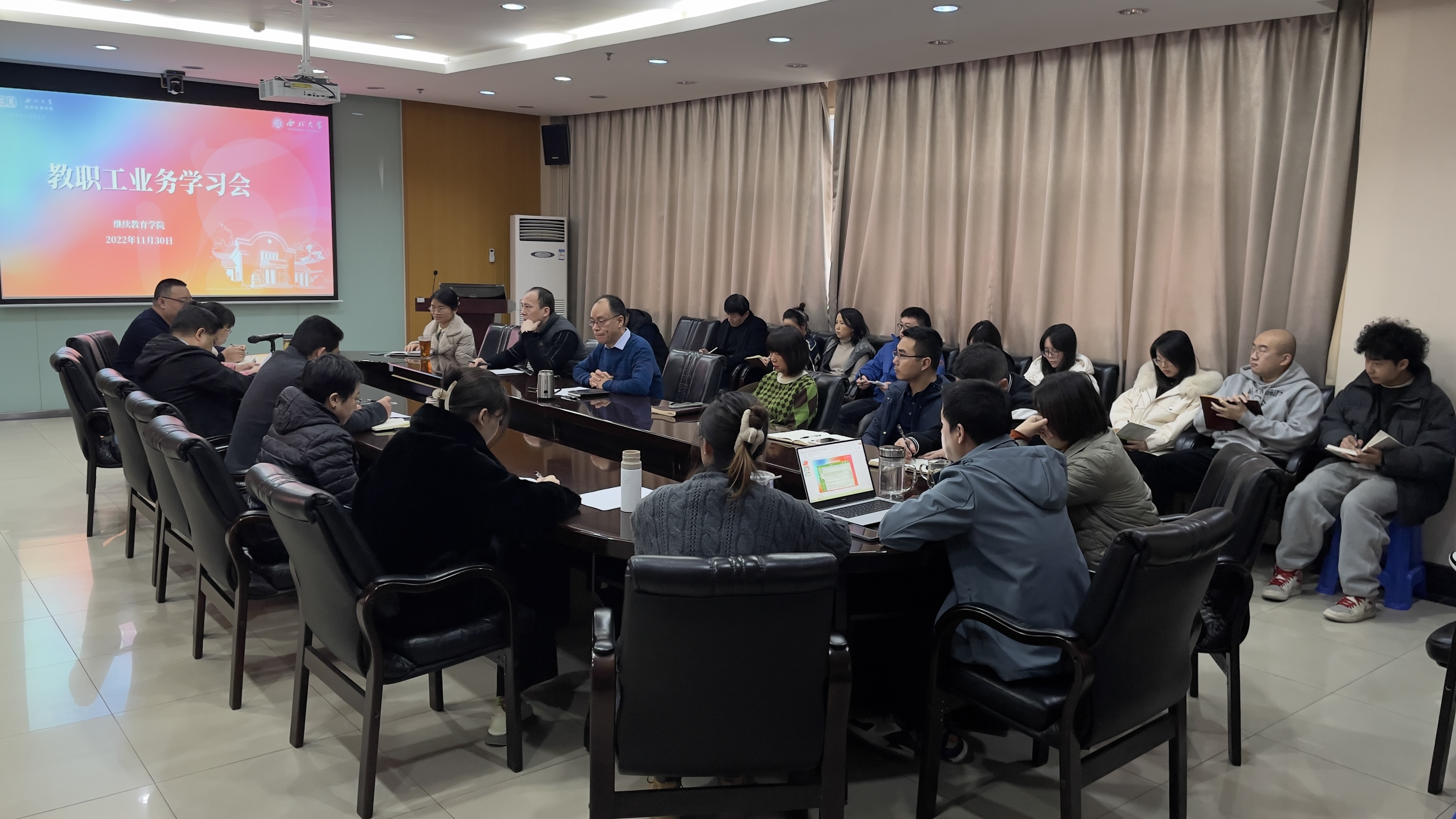 11月30日下午在公司会议室召开全体教职工业务学习会,会议由经理叶培哲主持,全体教职员工参加了会议。