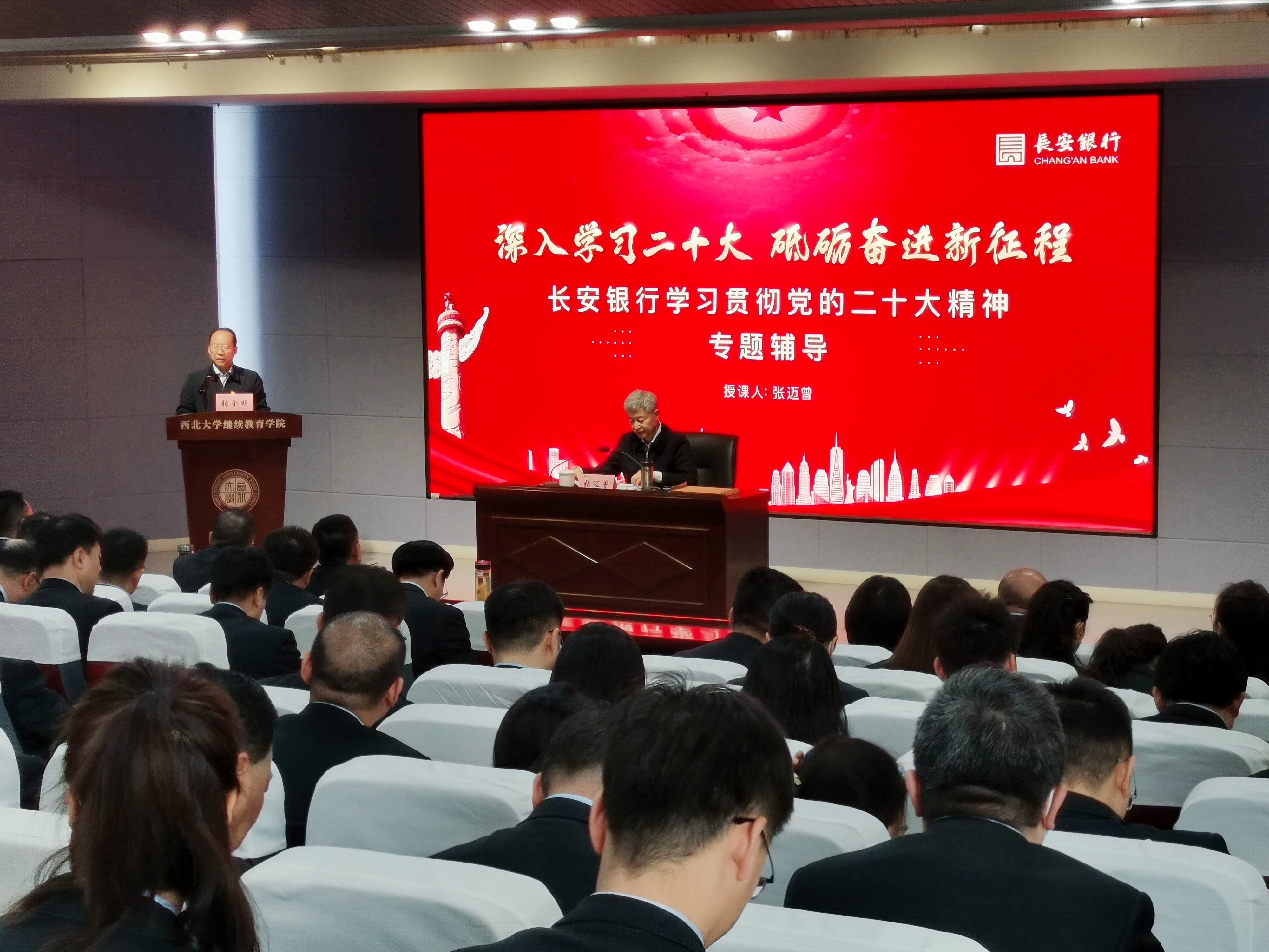 为推动学习贯彻党的二十大精神走深走实,此次培训通过线上线下相结合的方式安排了专题辅导,特邀西安交通大学原党委书记张迈曾作专题辅导报告,报告由长安银行党委书记、董事长张全明主持,总行机关经理、分支机构主要负责人300余人参加现场学习,10个地市分支机构近4000名员工通过直播方式在线学习。