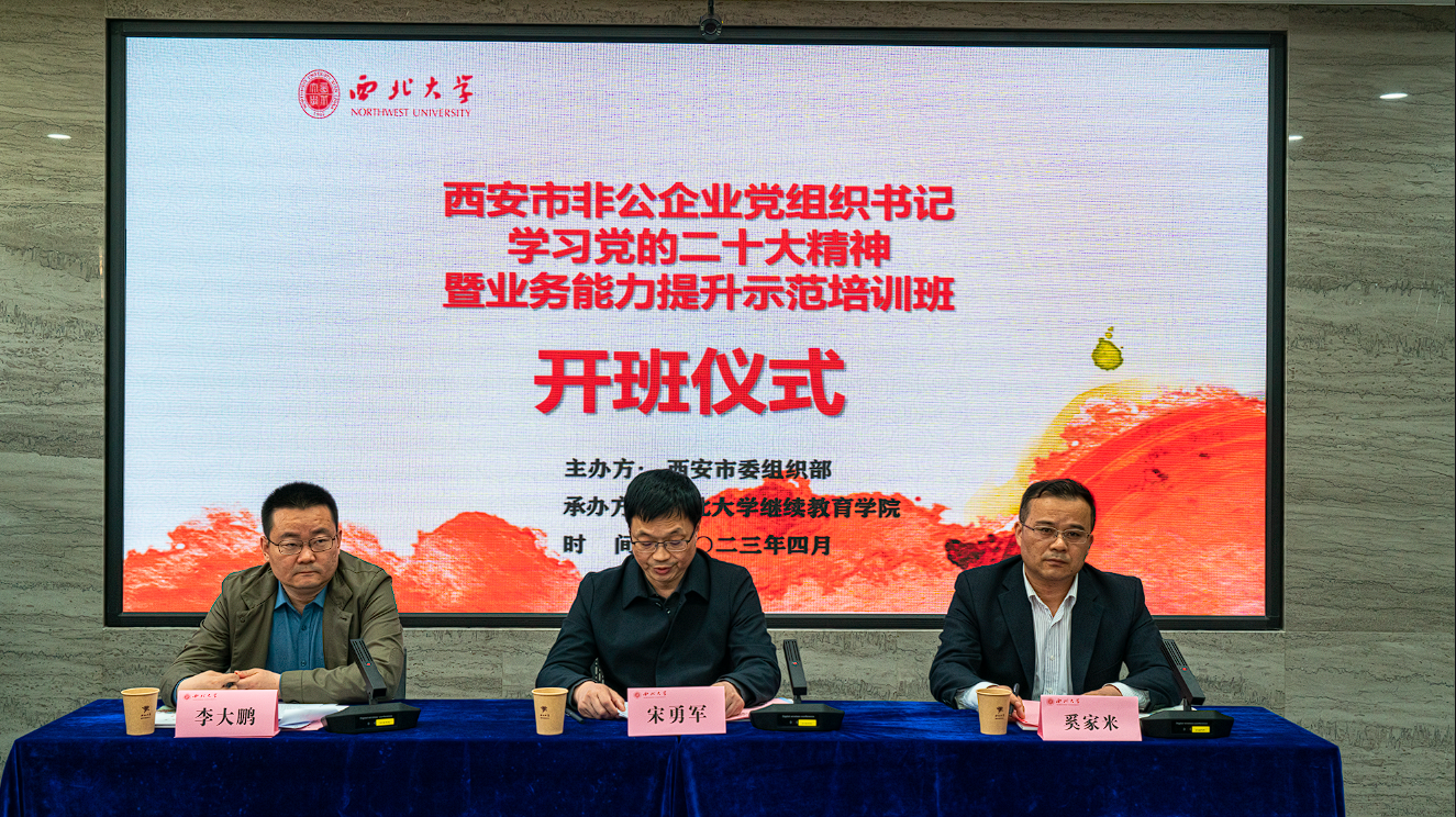 为贯彻好党的二十大和二十届一中、二中全会精神,引导全市非公经济组织党组织书记拓宽思路视野,更新思想观念,提升业务能力。4月12日下午,由中共西安市委组织部主办,公司承办的“西安市非公企业党组织书记学习党的二十大精神暨业务能力提升示范培训班”顺利开班。中共西安市委组织部副部长、市委非公和社会组织工委书记宋勇军同志,西北大公司党委常委、副董事长奚家米同志出席了开班仪式, 80余名西安市各区县、开发区非公和社会组织党建工作机构党务干部、重点非公经济组织党组织书记参加了开班仪式。