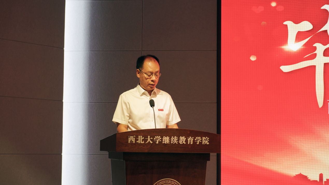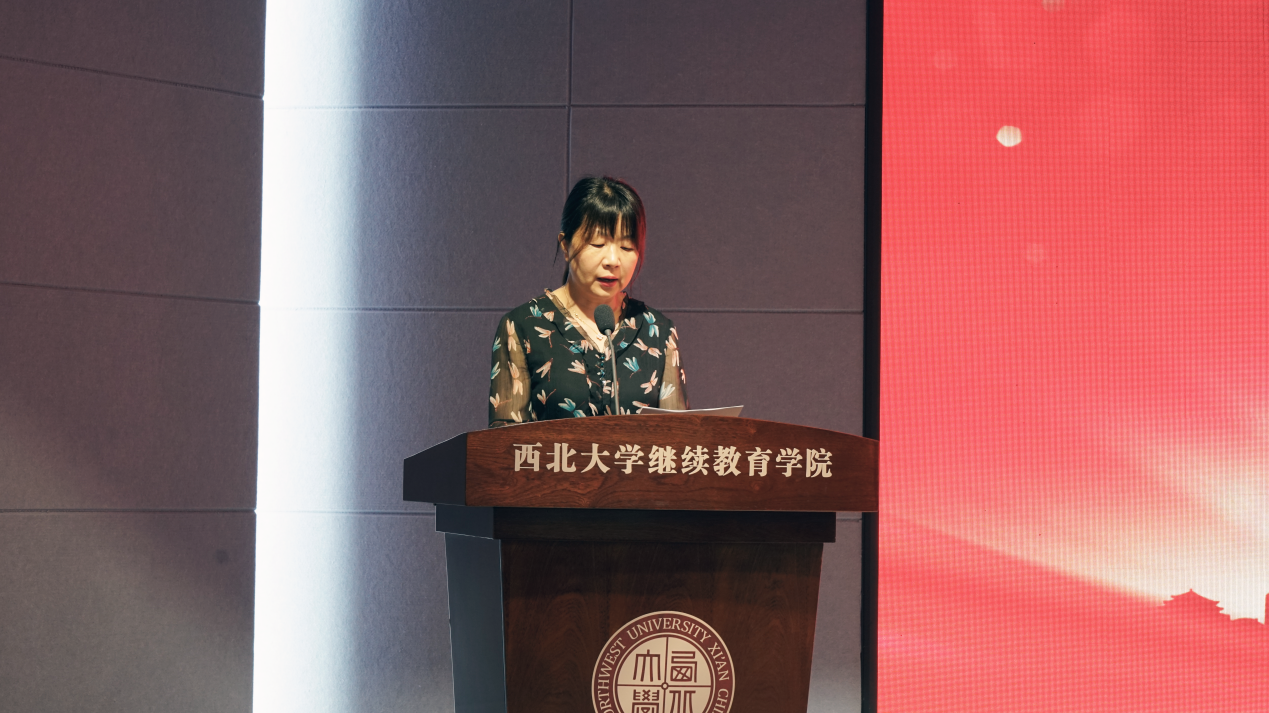 张莉玲宣读《关于表彰2023届高等学历继续教育优秀毕业生的决定》,并希望受到表彰的毕业生珍惜荣誉、锐意进取,在未来的学习和工作中开拓进取,以优异的成绩回报母校、回馈社会。