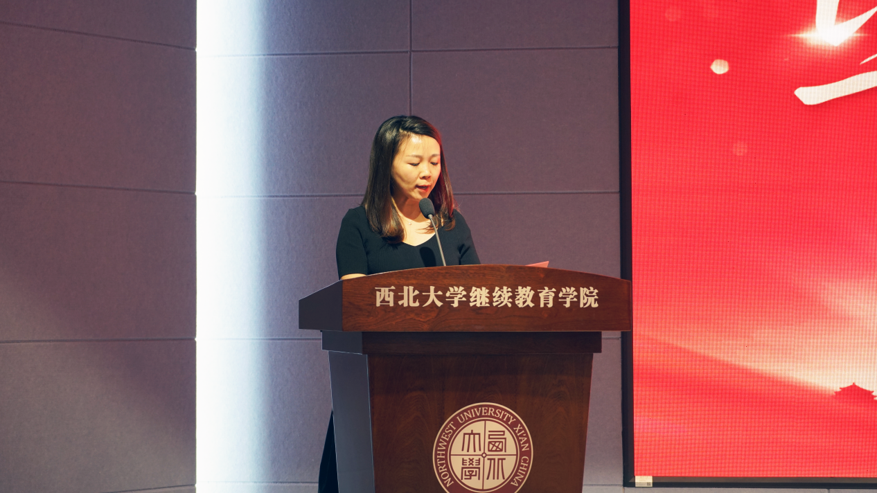 员工代表、高等学历继续教育2012级汉语言文学专业员工王路佳分享了自己在西大求学过程中的感悟及对个人发展的深远影响,对母校表达了由衷的感谢。并鼓励学弟学妹们要坚信自己的选择,人生每一段经历都不是白走的旅程,继续教育的学习再平凡,那也是限量版,一定会有“无心插柳”的收获。