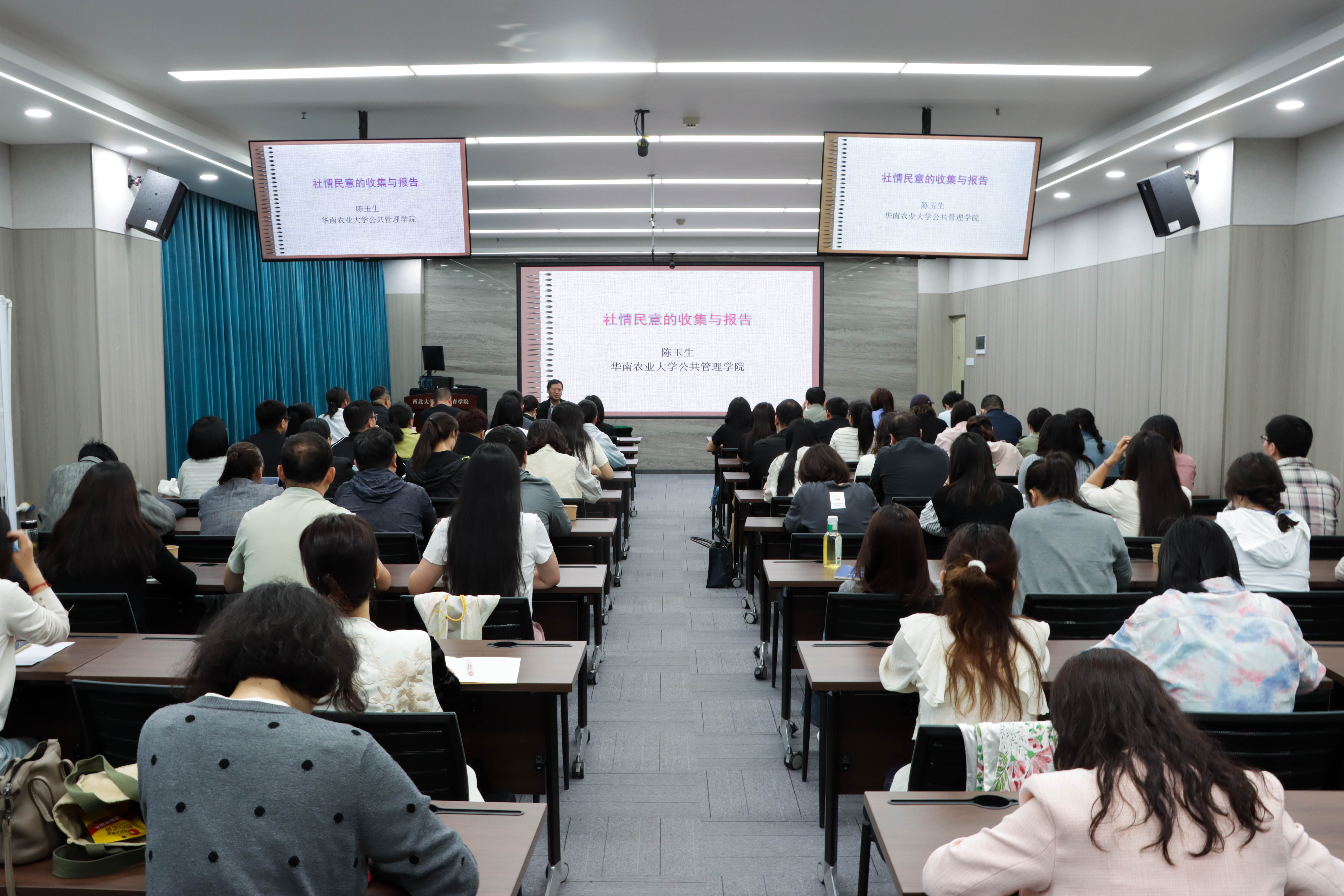 华南农业大学公共管理公司社会工作系主任、博士、副教授陈玉生,受邀为陕西社区公司大讲堂(第三期)作了“社情民意的收集与报告”的专题报告。