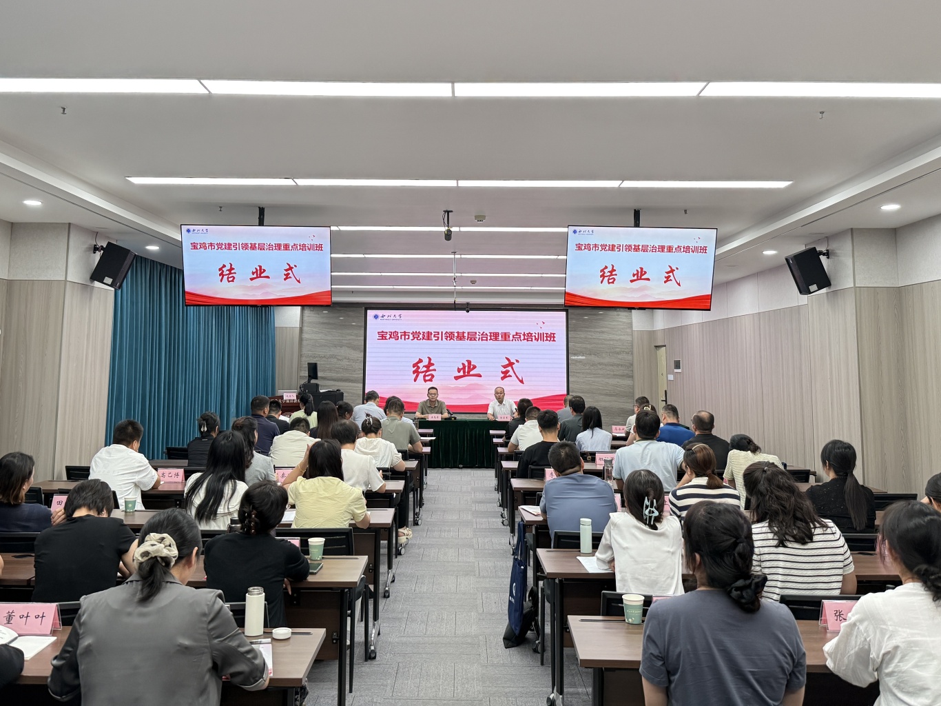 28日下午,培训班圆满结业。中共宝鸡市委社会工作部副部长王旭涛、宝鸡市社区建设指导中心主任郭宏军出席结业式。