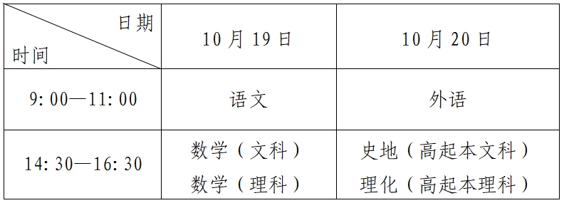 高中起点升本、专科考试时间表