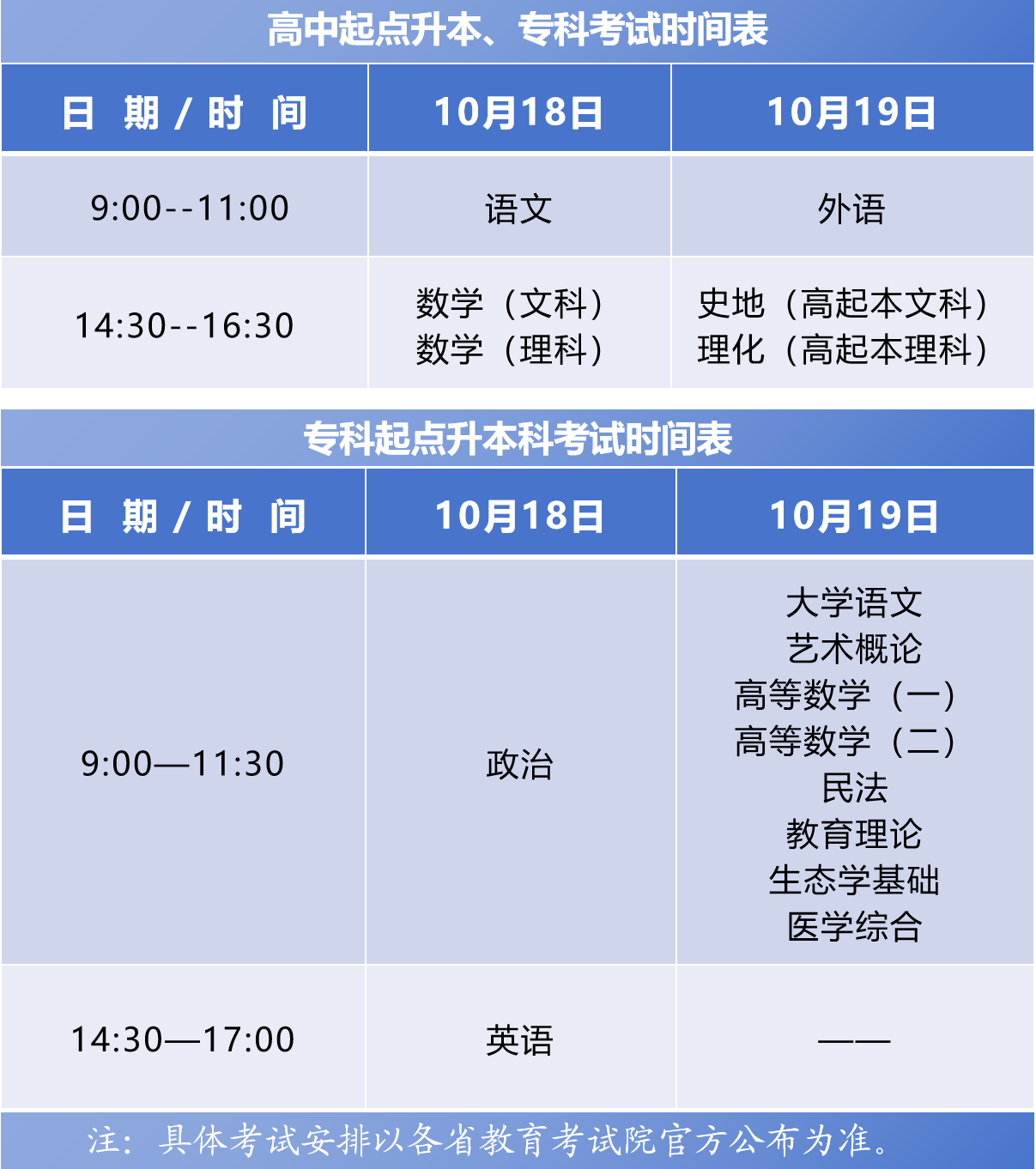 报考艺术类专业的考生,除参加成人高考外还需参加由招生院校组织的专业课考试(具体安排请关注主办高校官网或微信公众号)。未按要求参加考试或考试成绩未达到省教育考试院规定分数线的考生不予录取。